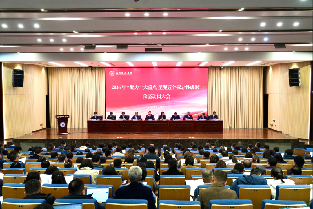 不负春光冲刺跑、跃马扬鞭勇争先。3月11日,温州理工学院2026年“聚力十大重点 呈现五个标志性成果”攻坚动员大会在滨海校区召开。校党委书记陈永光要求全校上下凝心聚力、攻坚克难,以决战决胜的姿态推动学校在建设特色鲜明的高水平地方性理工类应用型大学新征程上迈出更大步伐,确保“十五五”高质量开局起步。校长孙芙蓉主持会议。
