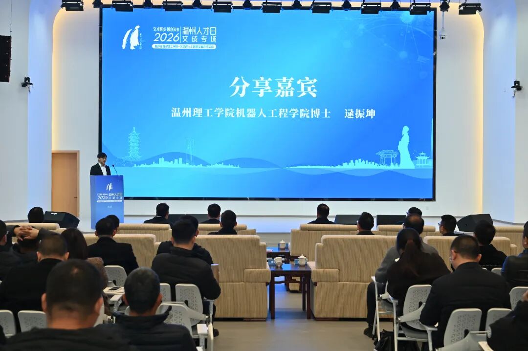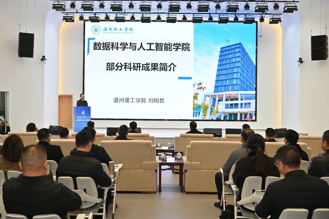 温州理工学院数据科学与人工智能学院院长刘明哲、机器人工程学院逯振坤博士推介人工智能研究成果。
