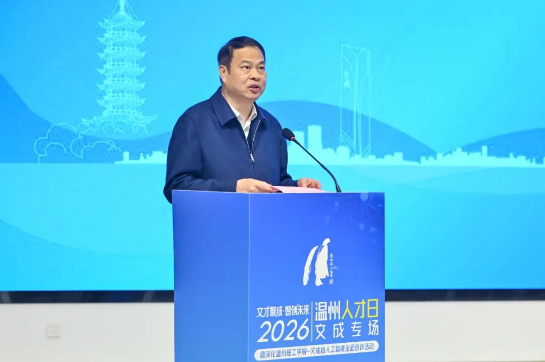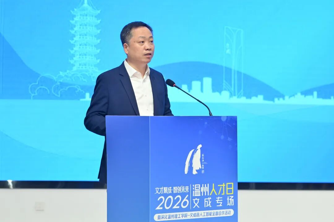 罗招政表示,去年以来,文成积极响应省委关于人才强省建设号召,以“文才聚成”为抓手,扎实推进人才引育留用各项工作,交出了一份沉甸甸的人才工作答卷。站在新的历史起点上,文成将紧扣数智驱动,打造 AI 应用新高地;聚力文才聚成,构筑近悦远来的人才强磁场;深化产教融合,搭建校地协同合作大平台,推动创新发展更上一阶、校地协同更深一层、产才融合更实一步。期待温州理工学院将人工智能领域的学科优势、人才优势、技术优势与文成的场景优势、生态优势深度绑定,共同打造校地协同创新的标杆样板。
