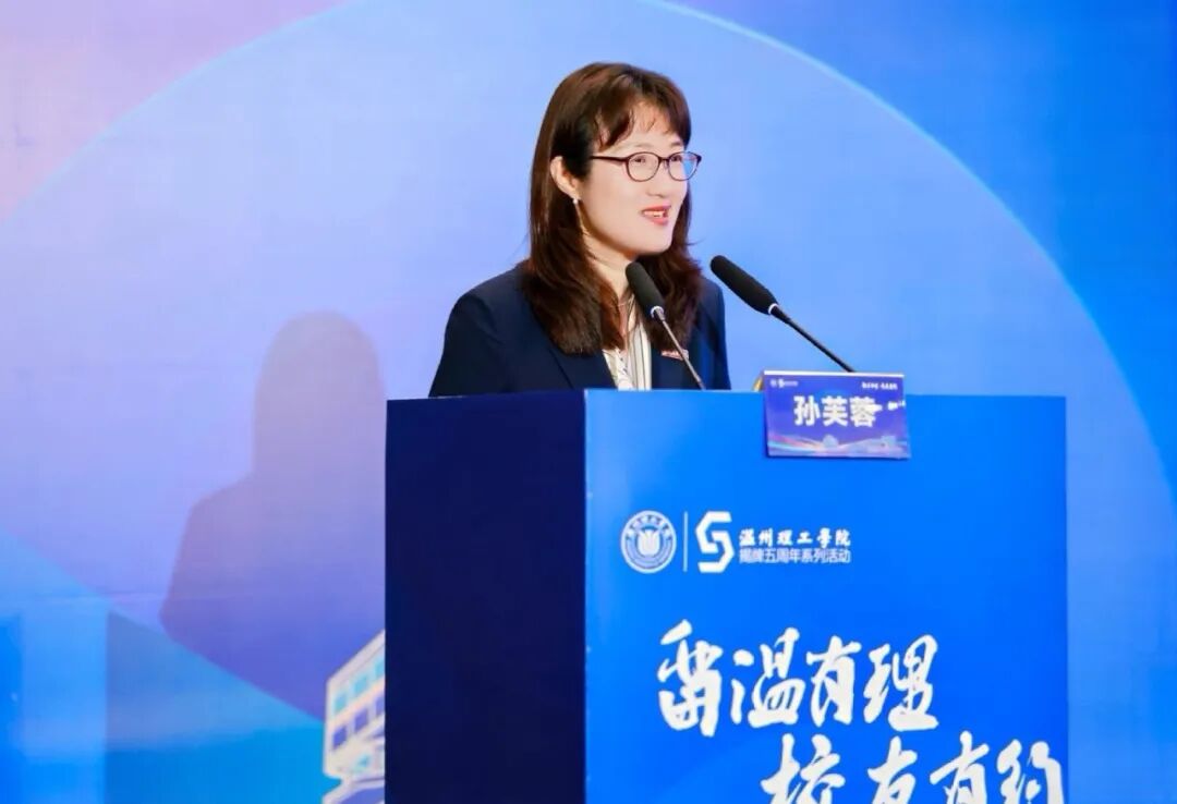 学校校长孙芙蓉发表致辞,代表学校向远道而来的全体校友、长期关心支持学校发展的各界朋友致以热烈欢迎和衷心感谢。她指出,揭牌五年来,学校在瓯江学院二十余年办学积淀上实现蝶变跃升,坚守校训、锚定 “地方性、理工类、应用型” 定位,在人才培养、学科建设、产教融合等方面取得显著突破,办学实力与社会影响力持续提升。