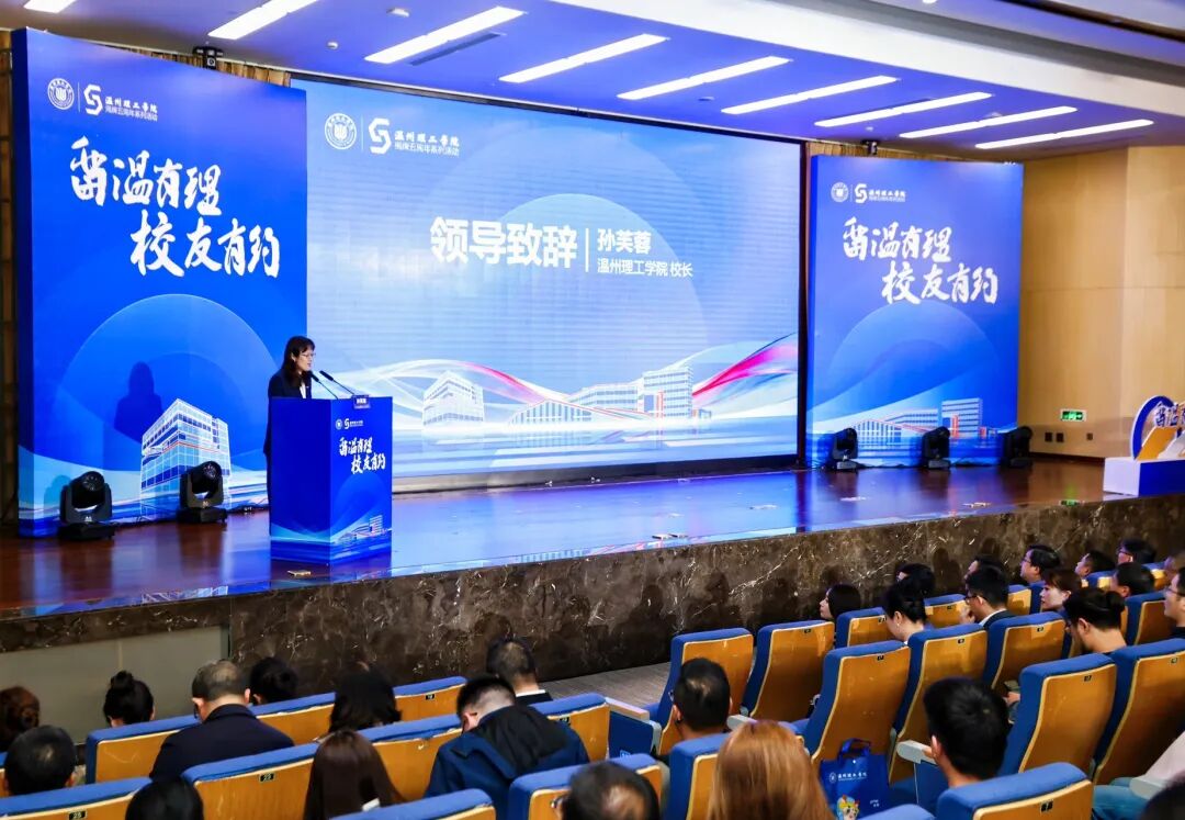 她表示,校友是母校最宝贵的财富与最闪亮的名片,是联结校园与社会、服务地方发展的重要桥梁。学校本科毕业生留温率连续五年位居温州本科高校首位,已成为温州城市发展的动力源和创新人才孵化器。本次活动既是情谊之约,更是校地协同、校企合作、校友同心的发展之约。她希望广大校友常回家看看,做母校发展的同行者;发挥桥梁纽带作用,做校城融合的推动者;点亮青春灯塔,做学弟学妹成长的领路人,与母校同心同行,共筑校地共生共荣新格局,为温州高质量发展贡献温理工力量。