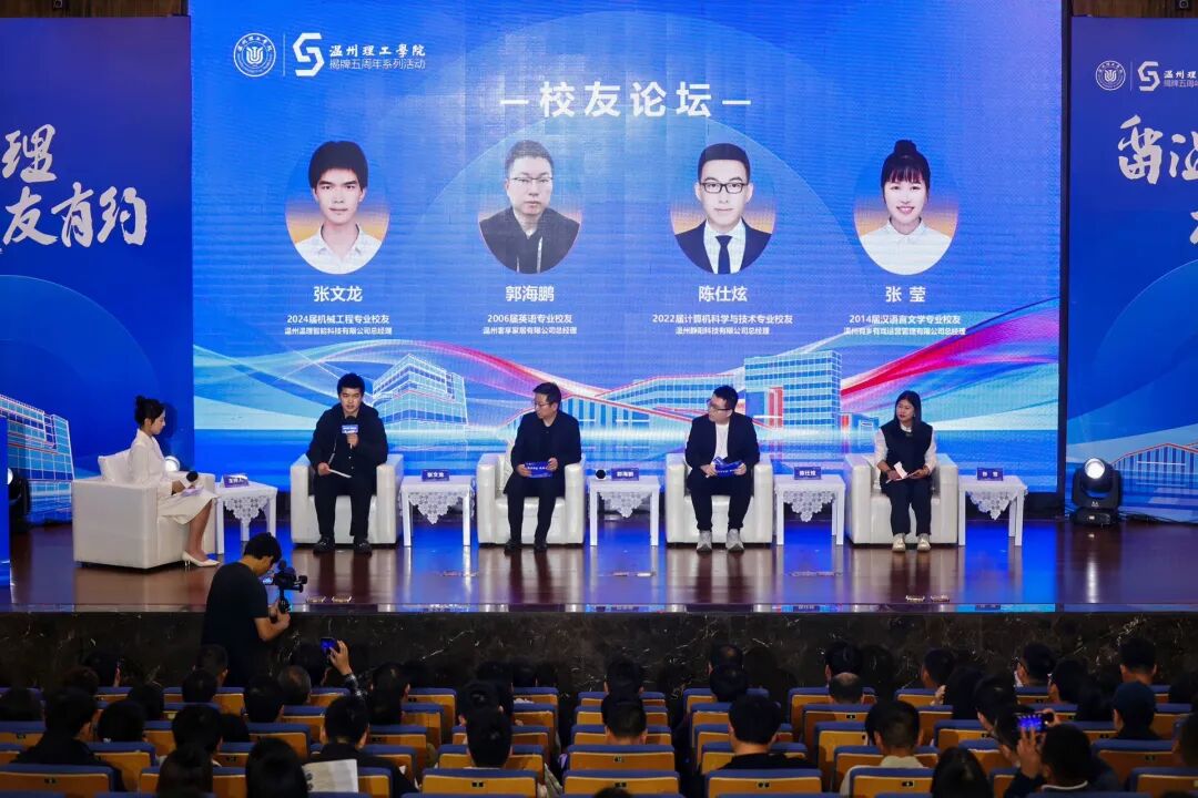 廿载耕耘育桃李,五载芳华启新程;故园重逢叙情谊,薪火赓续赴新章。4 月 21 日,温州理工学院揭牌五周年系列活动“留温有理·校友有约”温情启幕。“留温有理”,彰显校城同心、同向同行、同频共振;“校友有约”,饱含母校牵挂、学子眷恋、双向奔赴。整场活动庄重有序、温情务实、暖意绵长,以相约聚校友、以交流促留温、以合作助发展。学校校长孙芙蓉,党委副书记王定福,党委委员、宣传部部长、统战部常务副部长林盛光出席活动,学校相关职能部门负责人、各二级学院院长及副书记、师生代表,以及来自各行各业的校友代表参加活动。其中,120余名校友满载深情返校相聚,忆青春、话成长、传经验、拓岗位,以榜样力量引路学弟学妹,以优质就业岗位助力学子扎根温州、逐梦前行。