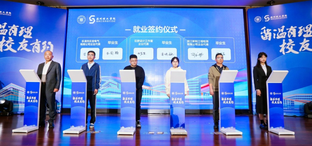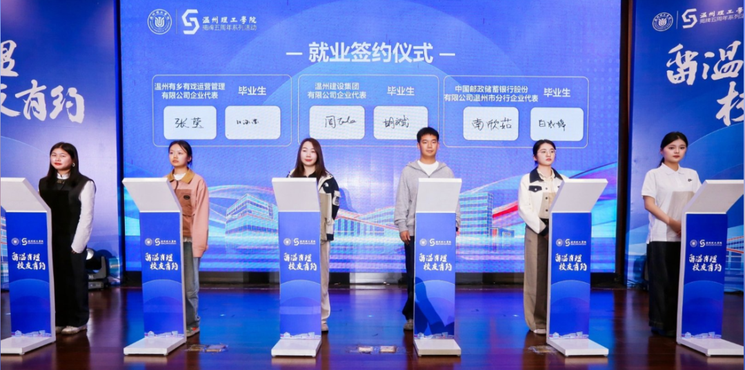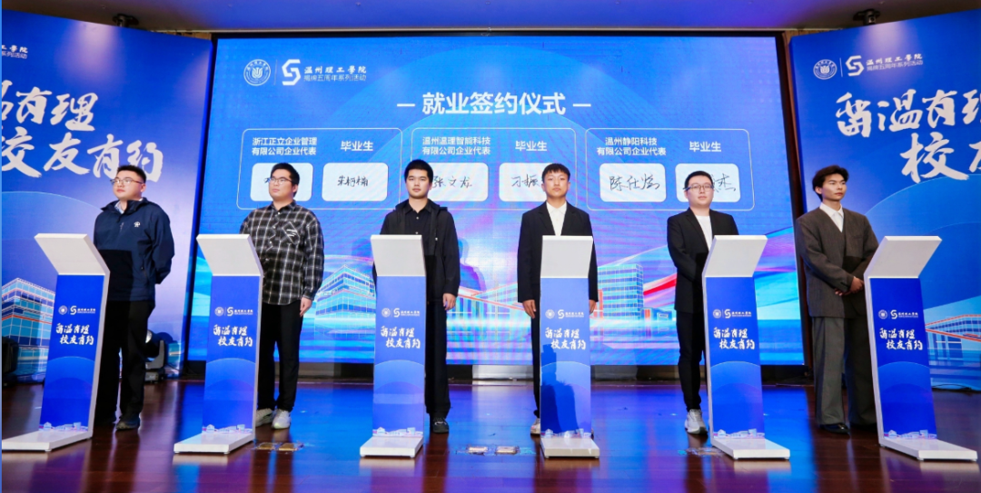 随后举行的就业签约仪式,将整场活动推向高潮。在现场校友企业的共同助力下,一批优质岗位现场达成签约意向,让校友资源真正转化为学子留温就业机遇,生动践行了“百名校友带动千个岗位”的活动初衷,彰显了活动的务实成效。