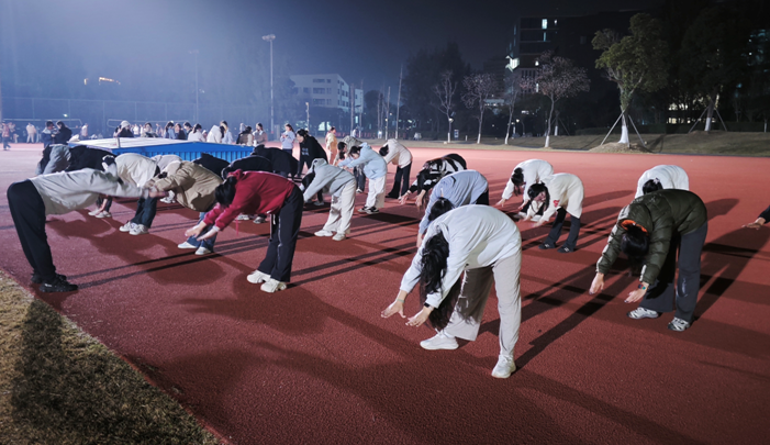 作为党员教师比例超过80%的教学单位,亮身份、作表率,晚间体能课正是将立德树人与党员先锋模范作用结合的具体实践。从课程设置到人员安排,每个人都主动承担任务。黄寿庆老师的孩子正值高考关键期,但他从未因此调整过排班;方小洁老师家住平阳,每次上课都要在校过夜住宿,还有几位临近退休的老教师,也坚持每周到场指导。老师们用行动诠释了‘四有’好老师的标准,也在校园里树立了党员教师的鲜亮旗帜。当被问及为何如此投入时,老师们给出了相似的回答:“看到学生因为我们的努力而更加健康,这种成就感无可替代。”