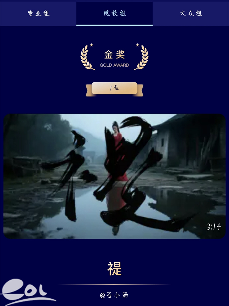 本次大赛聚焦AI赋能影像创作,吸引了全国众多院校学子与专业创作者踊跃参与。石小洒同学的作品以“众生皆禔,大爱为神”为核心立意,深挖“禔”字安与福的双重内涵,将世间相守相助的温情、同心共济的大爱融入影像,既以精湛的AI技术赋能画面呈现,用细腻镜头诠释和平与共情的深刻主题,又以人文内核传递温暖力量,打破技术与情感的壁垒,让作品兼具科技质感与思想温度,最终在众多参赛作品中脱颖而出,成功摘得金奖荣誉。